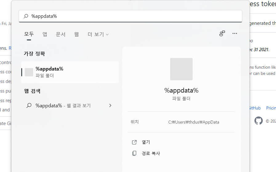 (appdata는 다음과 같이 검색해서 확인할 수 있음)