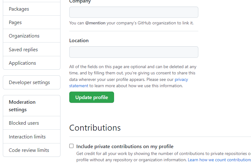 3. 왼쪽의 카테고리에서 Personal access tokens를 클릭한다.