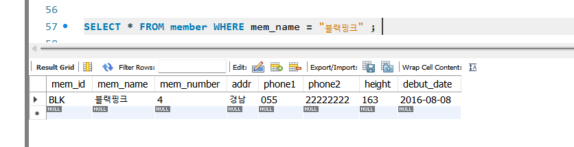 SELECT * FROM member WHERE mem_name = "블랙핑크" ;