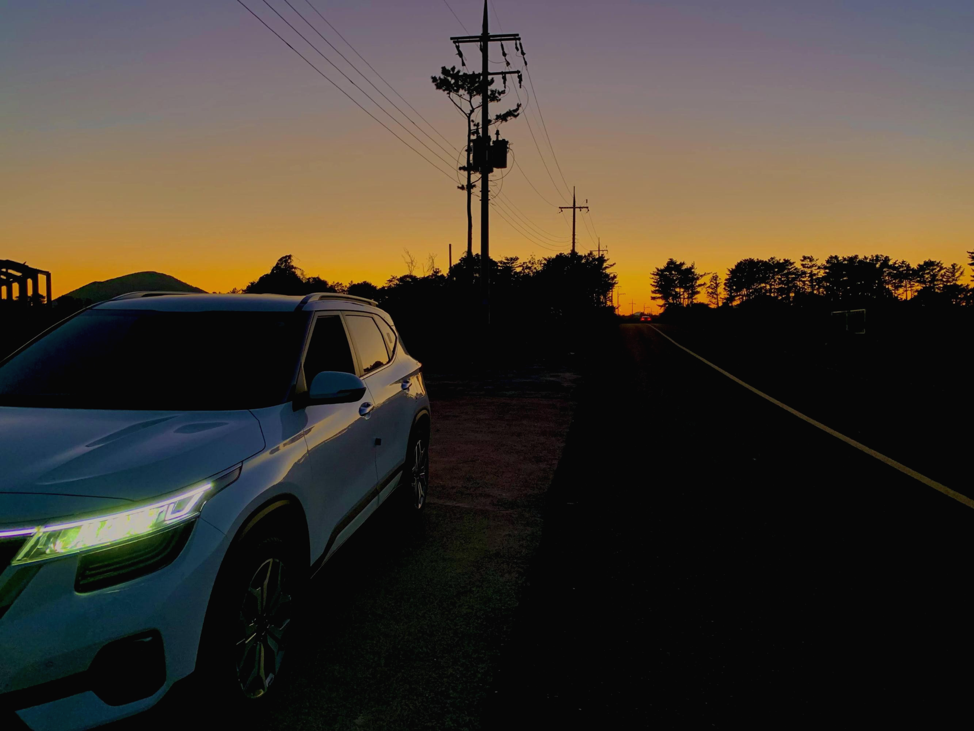 근데 경로 이탈하고 마주한 그 도로가 너무 이뻐서 차를 잠깐 세우고 사진을 찍었다.