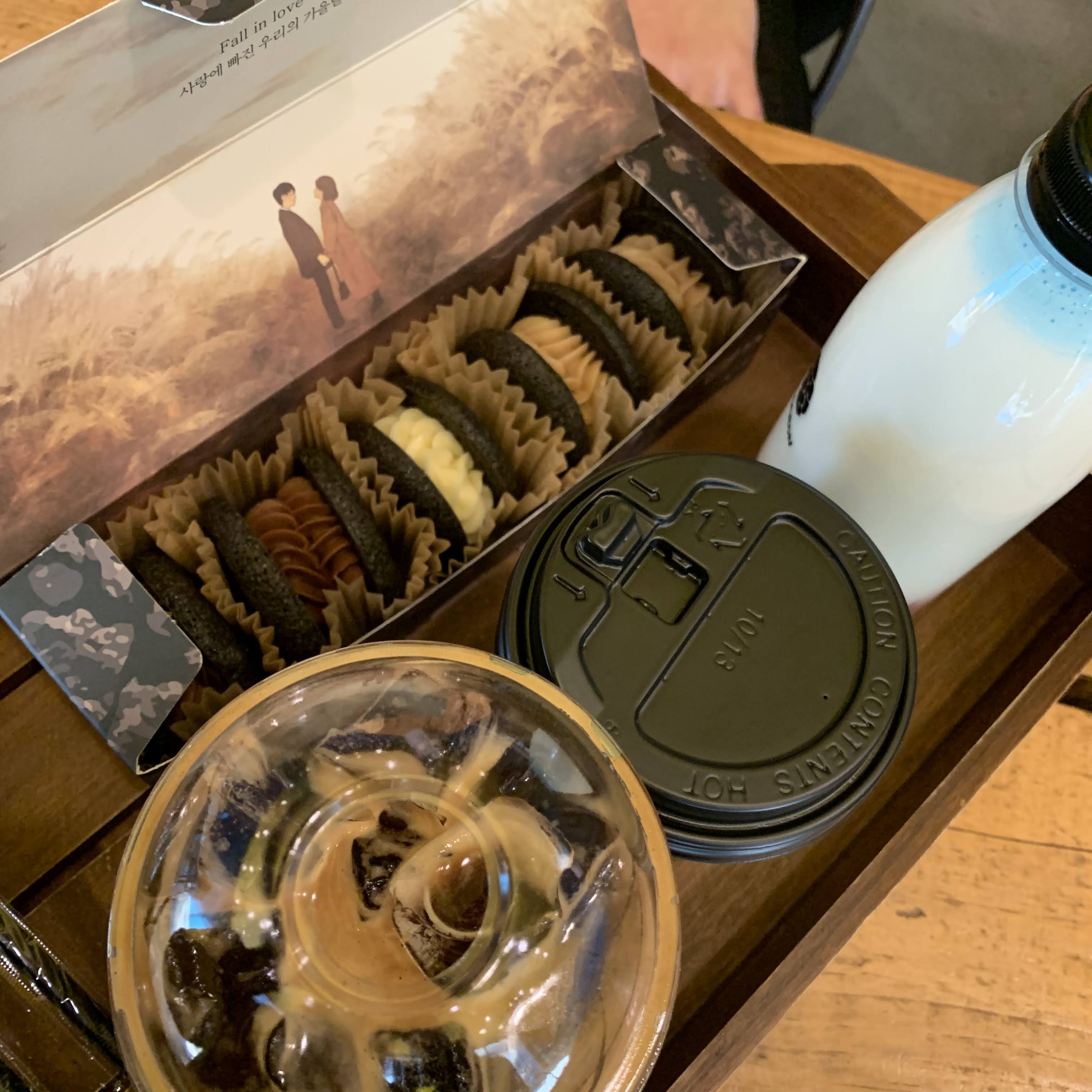 우리는 그 중에 초코2, 바닐라1, 티라미수2 개가 든 것을 고르고 각자 음료를 골랐다.