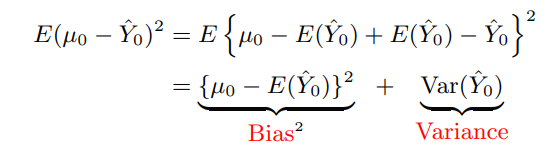 Training data에서 구한 추정량을 통하여 구하고 이를 이용하여 test data를 예측해보면, 원래의 자료와 예측된 자료 사이의 Predition Error가 발생한다. Predicition Error는 pure error와 model error로 구분된다.