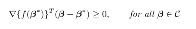 Differentiable한 함수에서 beta*가 다음을 만족하고 convex set에 속하면 global Optimum이라고 한다. (이 theorem은 왜 갑자기 나오는 지 모르겠네,,,)