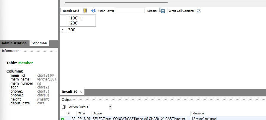 이전에 만들었던 member 테이블에서는 다음과 같이 mem_number열은 INT로, height은 SMALLINT로 지정하였다.