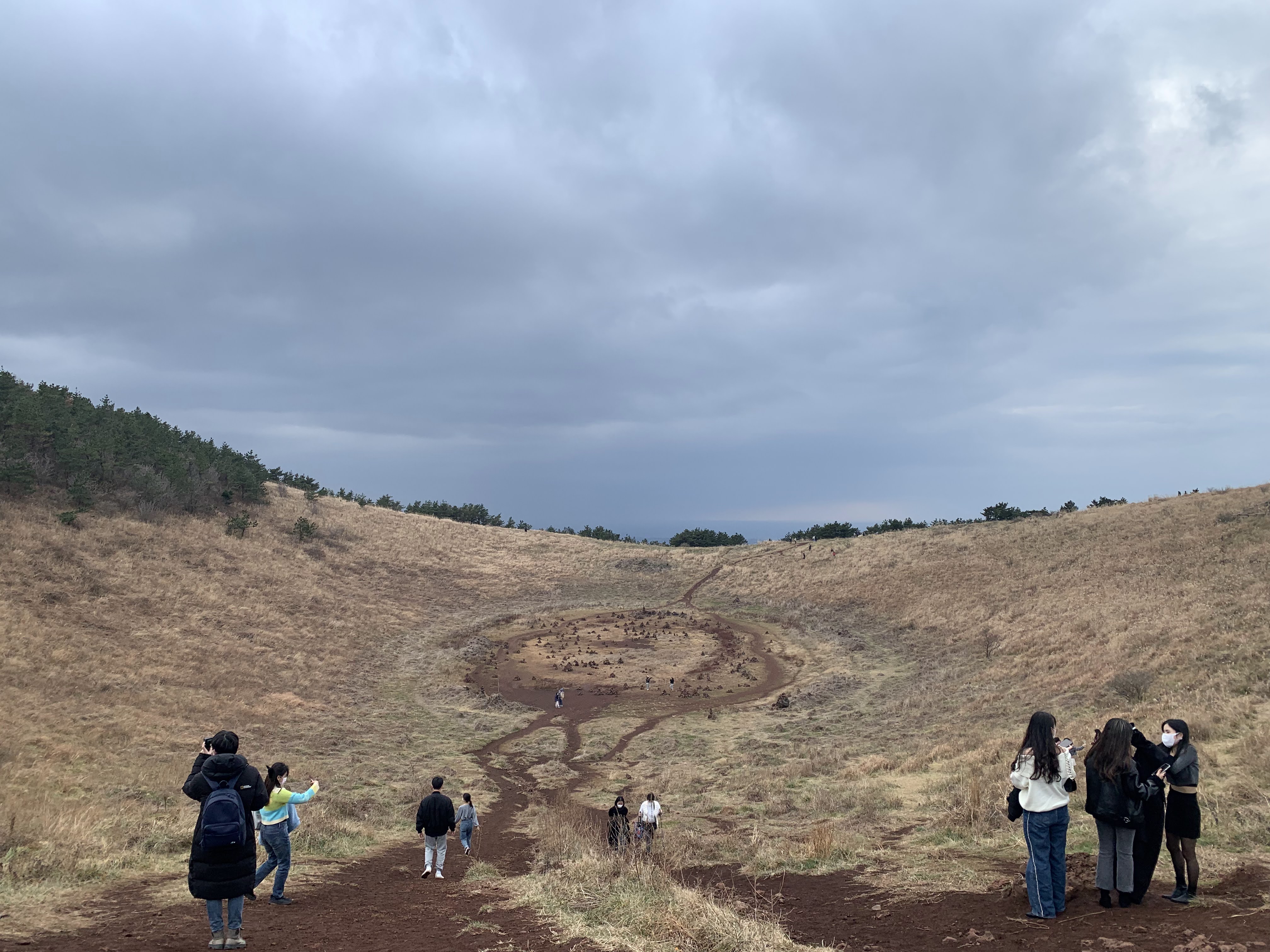 꼭대기에는 저렇게 원형 분화구가 있는데 예전에는 물이 고여있었는데 지금은 다 마른 것 같다.