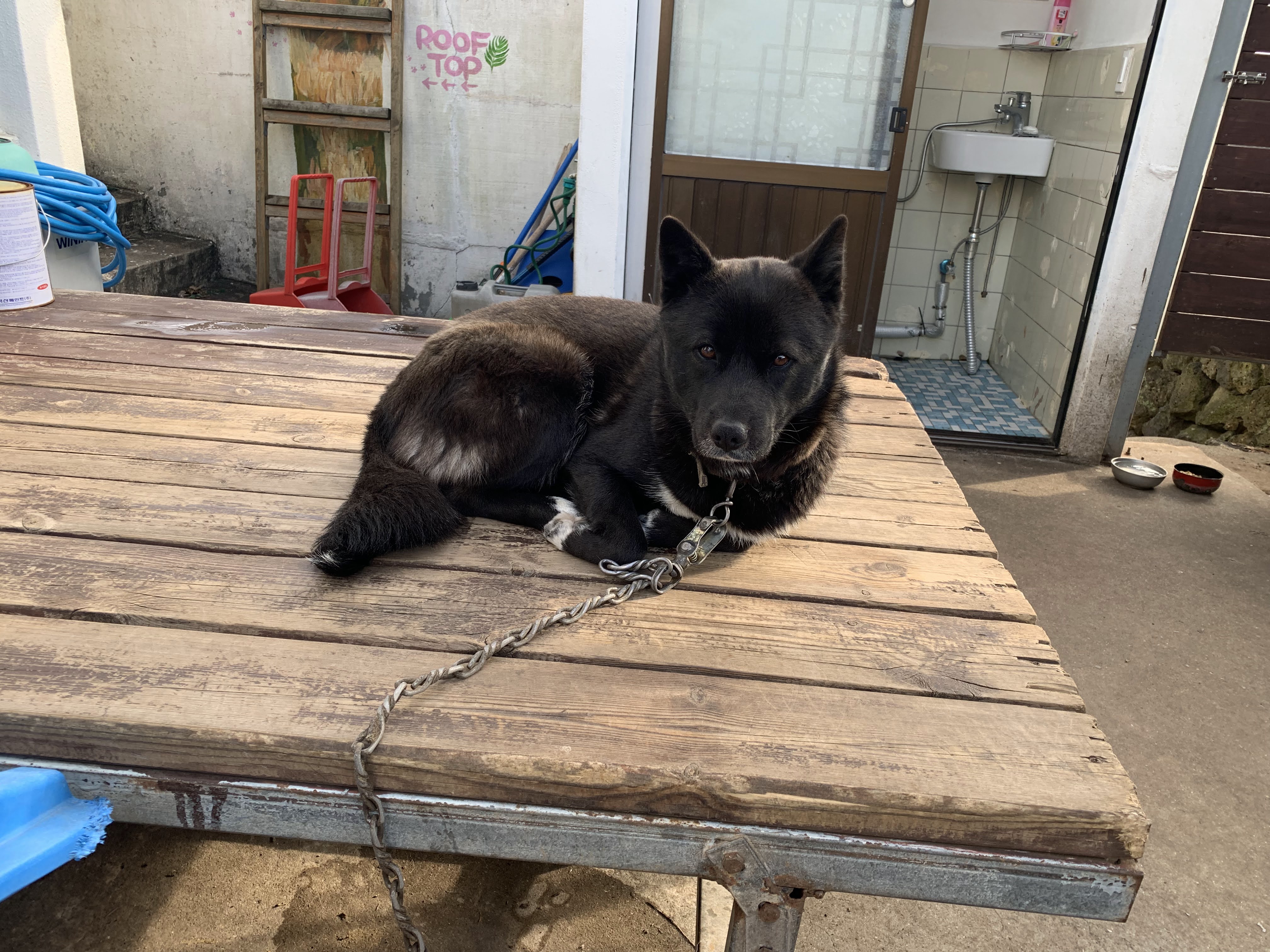 야외에 있는 화장실 갈 때 마다 이렇게 꼬리 흔들며 (내가 느끼기에) 반겨준다.