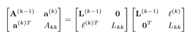 $L^{(k-1)}l^{(k)} = a^{(k)}$를 이용하여 $l^{(k)} = (L_{k1}, ..., L_{kk-1})^T $를 업데이트 한다.