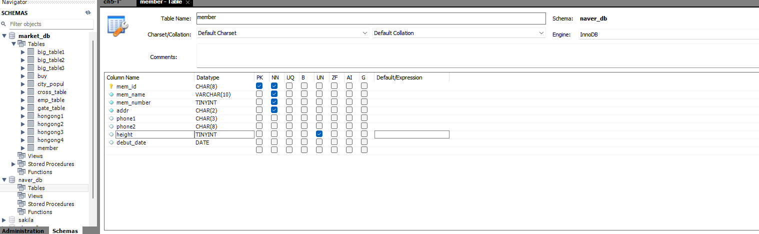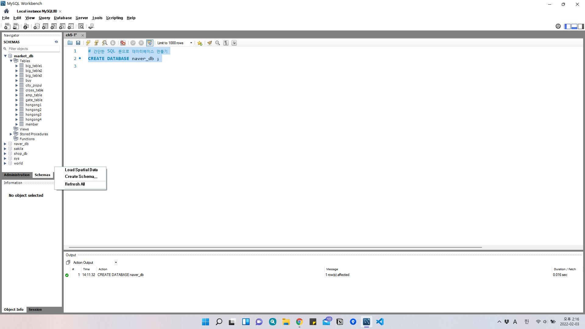다시 처음부터 naver_db라는 데이터베이스를 먼저 만들어보자.