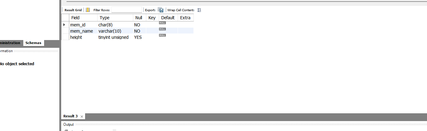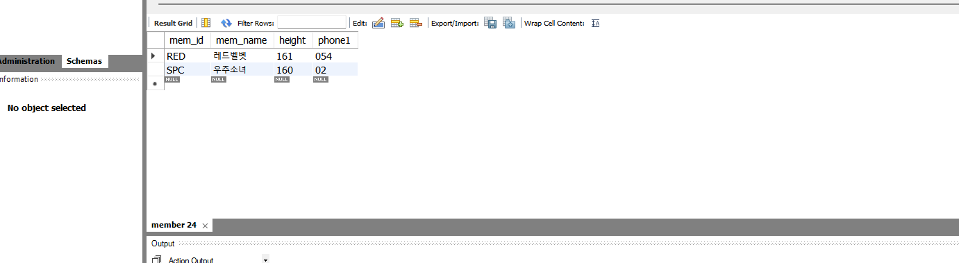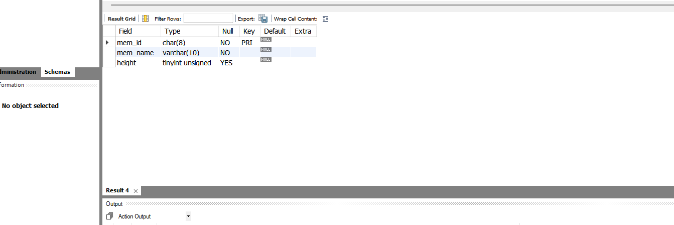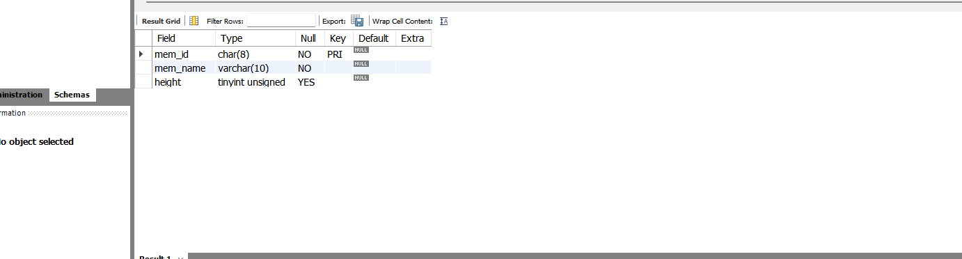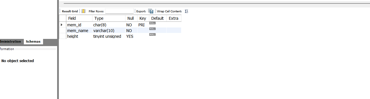 따라서 member 테이블에서 mem_id는 PRIMARY KEY가 되었고, 앞으로 입력되는 회원 아이디는 중복될 수 없고, 비어있을 수도 없다.