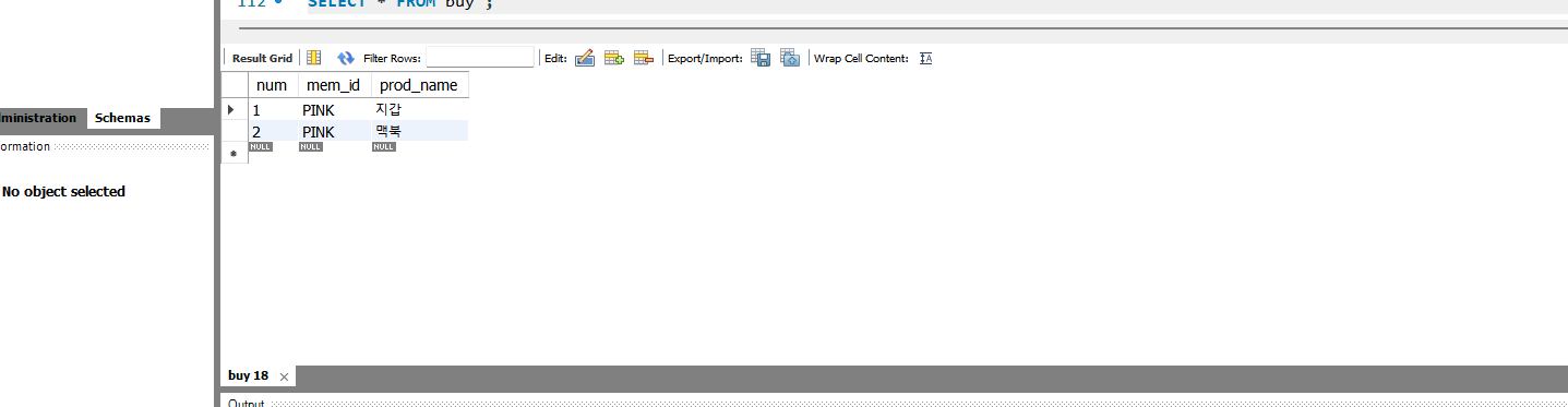 ※ member 테이블과 buy 테이블이 서로 PK-FK로 연결되어 있을 때, 외래 키(FK)가 설정된 테이블을 먼저 삭제해야 한다.