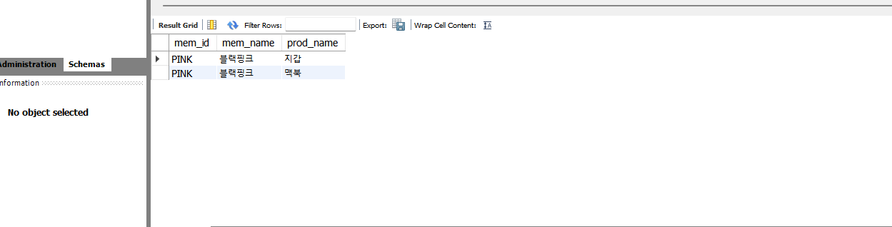 내부조인을 이용하여 아까 출력했던 'PINK'의 구매내역을 출력해보자.