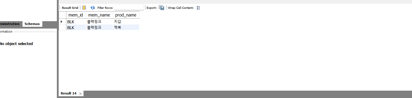 SELECT M.mem_id, M.mem_name, B.prod_name