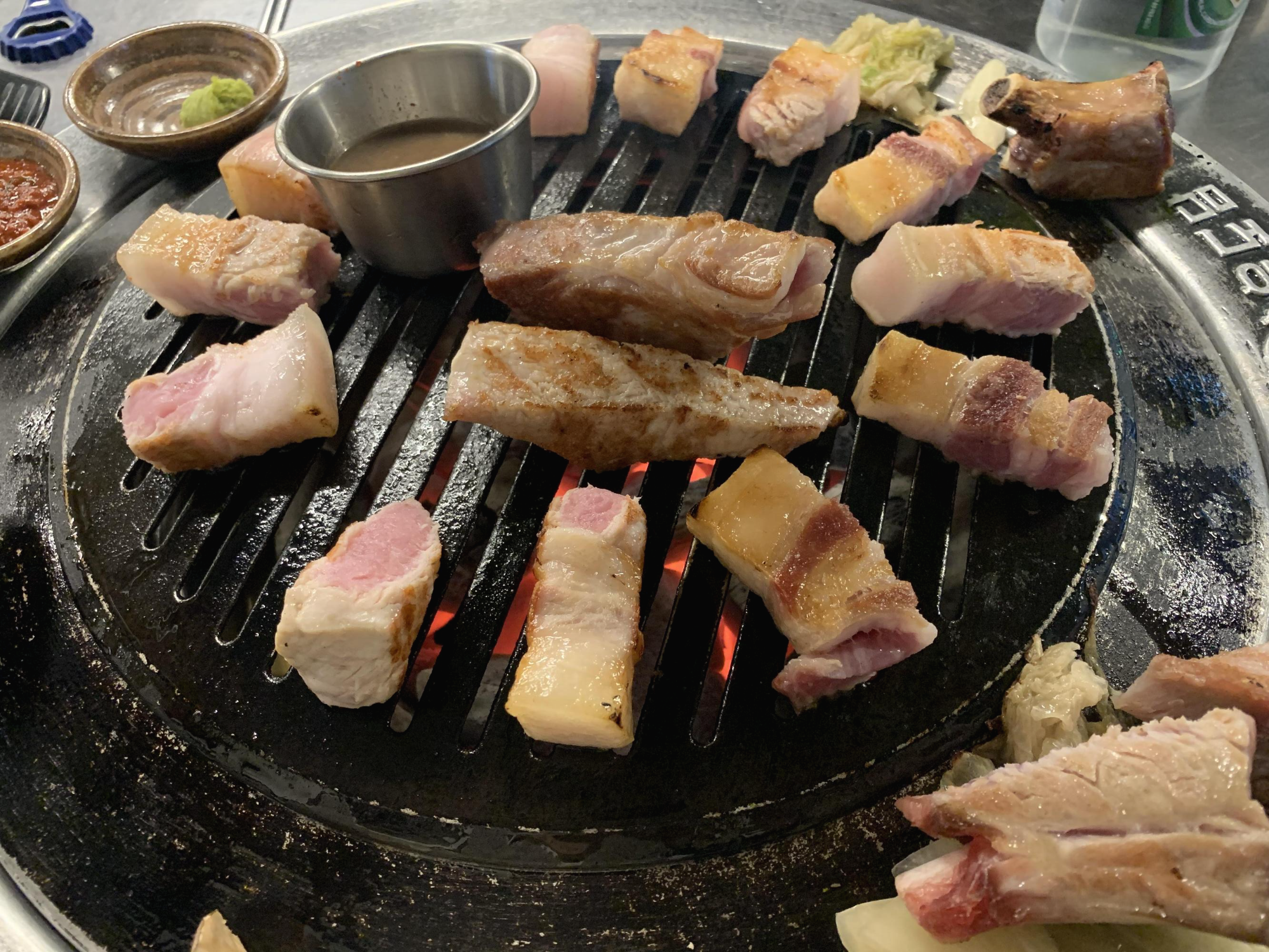 저기 백김치랑 같이 싸먹으면 진짜 꿀맛이다.