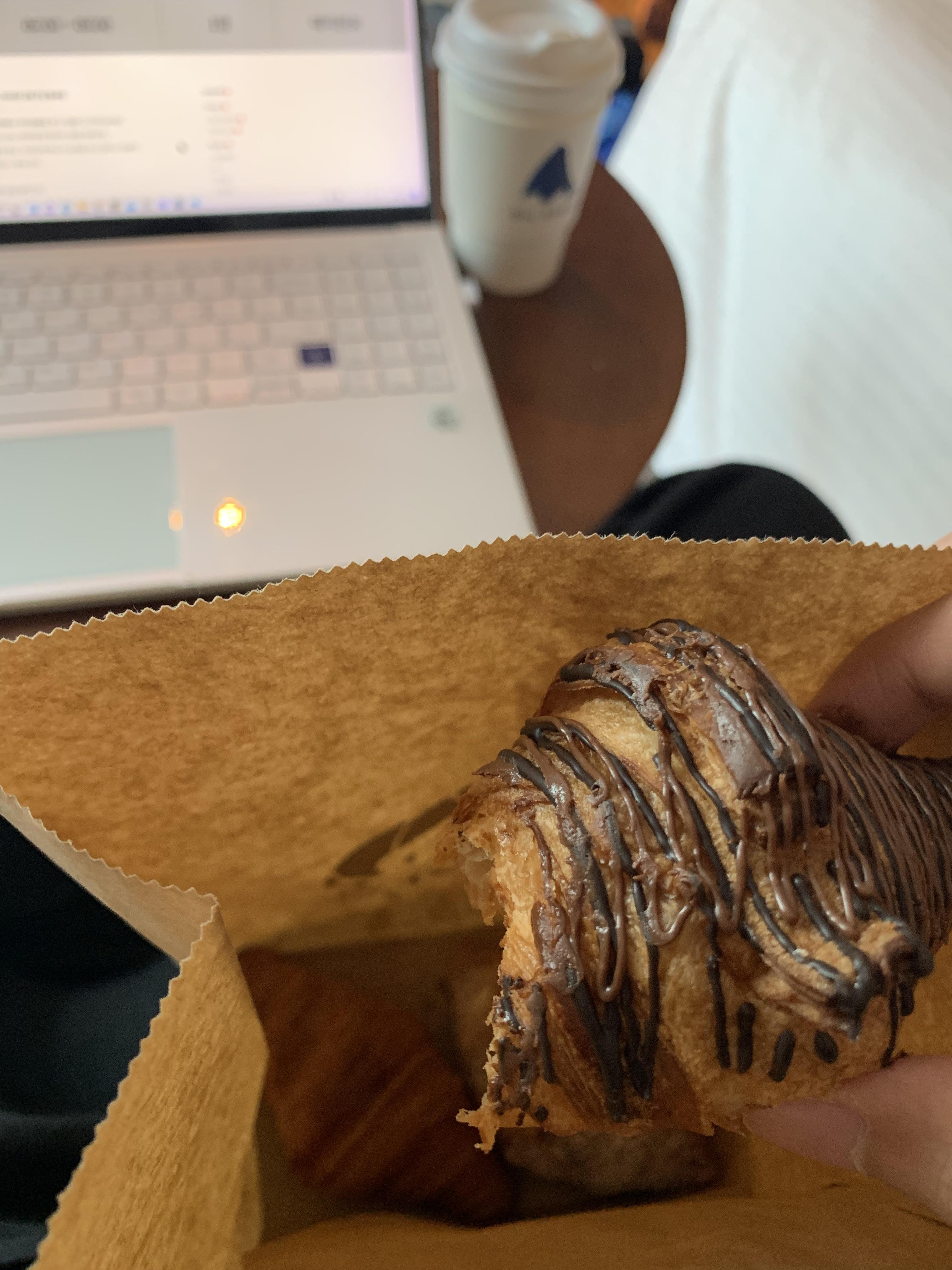 나는 누텔라, 아몬드, 버터 크로아상 세 개를 샀다.