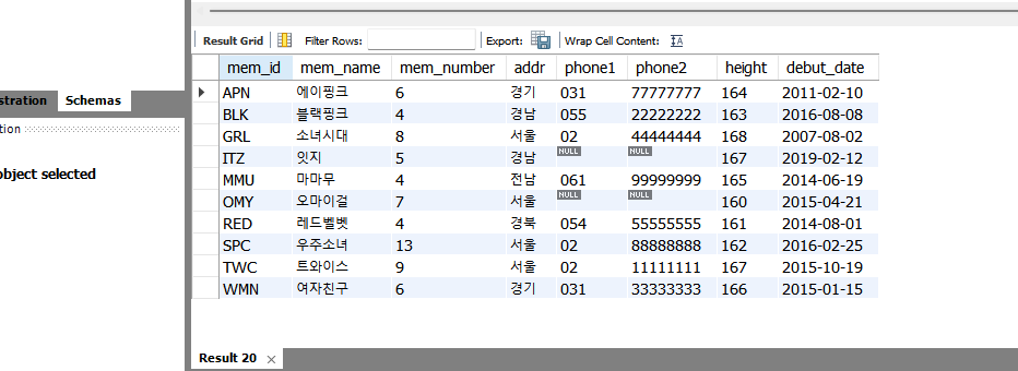 CALL ifelse_proc('소녀시대') ;