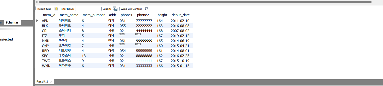 CALL user_proc1('에이핑크') ;