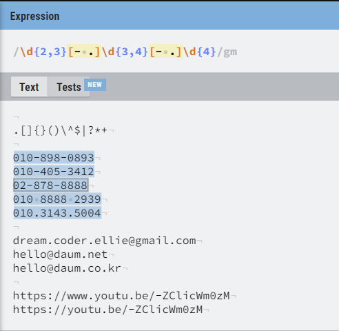 아래 사이트에서 정규표현식을 연습할 수 있다.