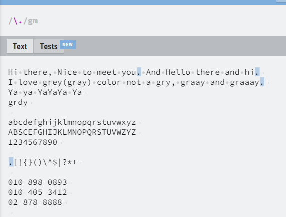 dot문자 하나만 쓰면 모든 문자가 다 선택된다. character dot 만을 선택하고 싶을 때는 backslash를 이용하여 \.을 입력하면 된다.